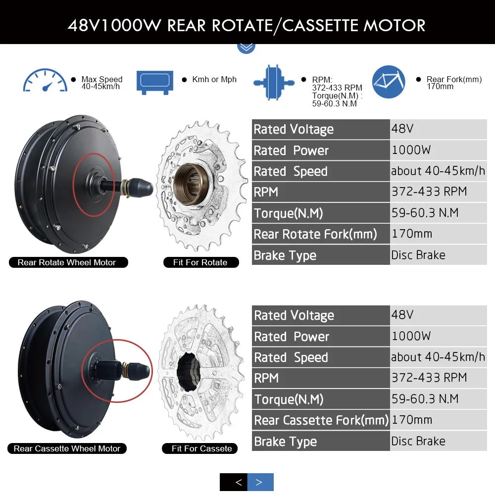 Product Name: Fett Reifen Fahrrad 48V 1000W 1500W 72V 3000W Schnee Ebike Bürstenlosen Getriebelose Motor Dropout Hinten 170/190mm Schnee EBike Conversion Kit