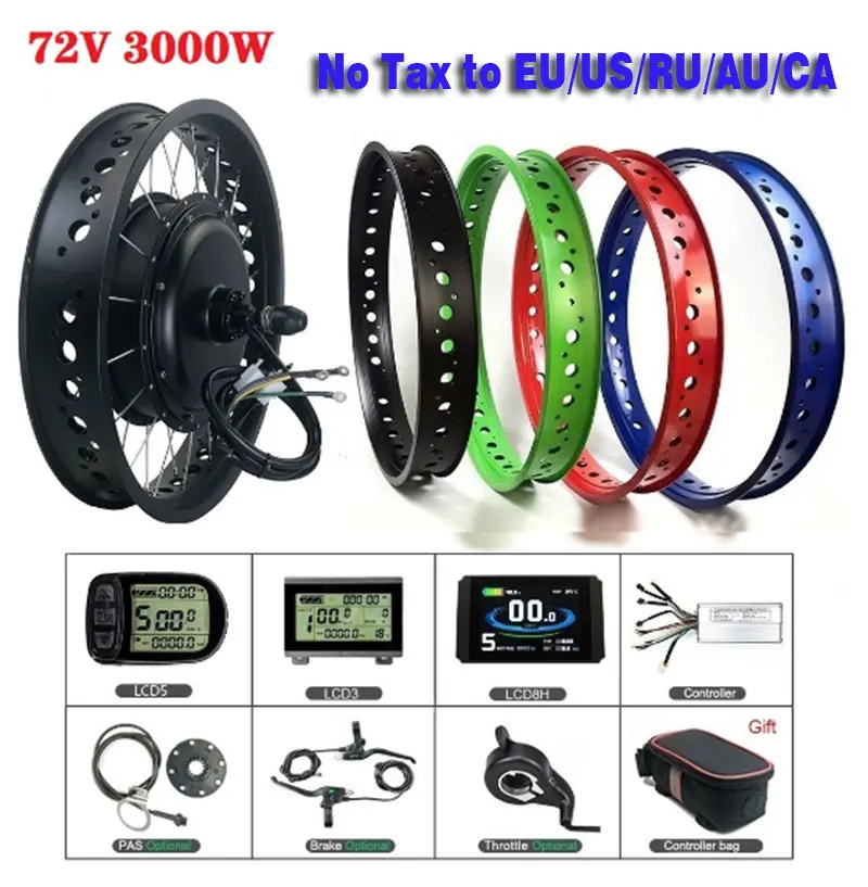 Special Offer Elektrische Bike Conversion Kit EINES TAGES 3000W 72V Schnee Fahrrad Bürstenlosen Getriebelose 20 Zoll Hinten Drehen Hub Motor Rad Für Fett Reifen Discount 0% Today!