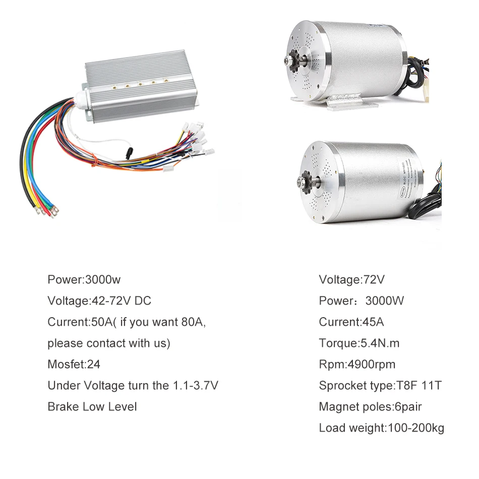 Product Name: Elektrische Roller Kit Electric Bike Conversion Kit 3000w 48V-72V Elektromotor Für Skateboard Ebike Motor Controller 50A Gehen Kart