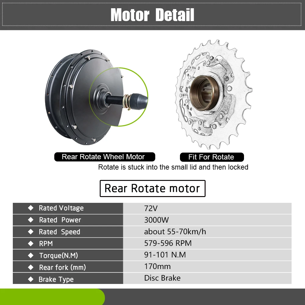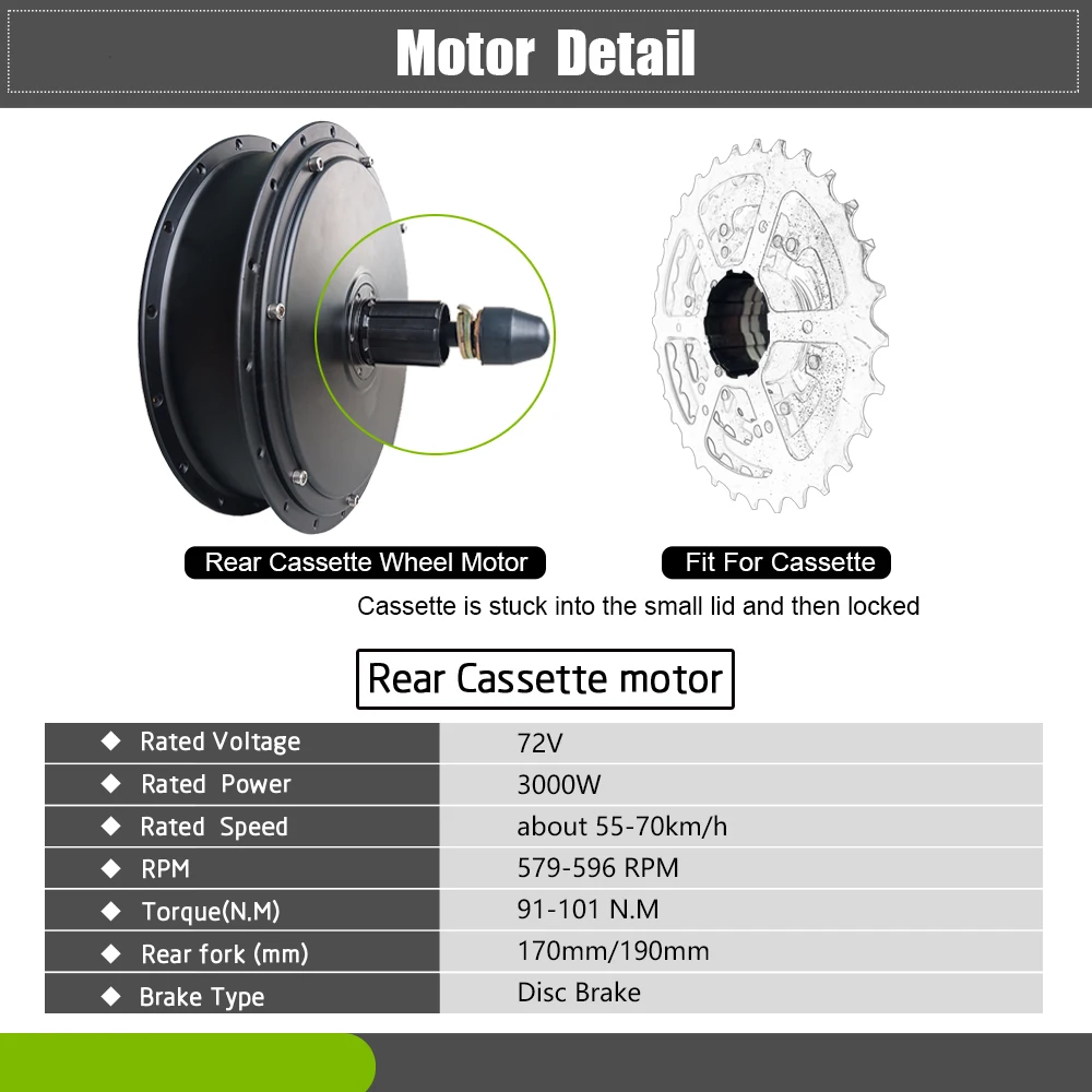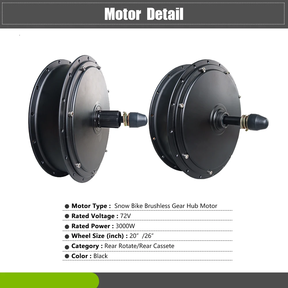 Product Name: 72V 3000W Schnee Elektrische Fahrrad Bürstenlosen Getriebelose Rad Hub Motor Conversion Kit Ebike Hinten Hub Motor Rad Stick